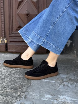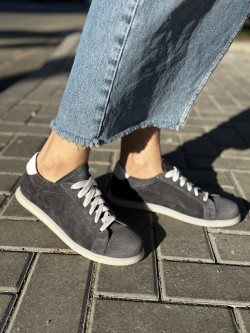 Sneakers din piele întoarsă cu elemente din piele naturală cu șireturi